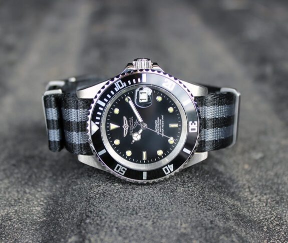 The Invicta Pro Automatic Diver is a staple in the affordable men’s style world. At 40mm it looks great on almost all wrists. With 200m of water resistance, a Japanese automatic movement, and classic good looks (let’s just call it a very strong a href="https://www.rolex.com/en-us/watches/submariner.html" target="_blank" rel="noopener">homage/a>), it punches well above its historical price of somewhere under $100. The only trouble with this thing is the engraved INVICTA on the 9 o’clock side. It’s too much. But thankfully it’s not as obtrusive in real life as one would think. If you’re a DIY-er, you can always try to take it off yourself. The center links are also polished, which isn’t favored by some of us. A quick fix for that would be to take the bracelet off all together, and swap in a NATO or leather strap.