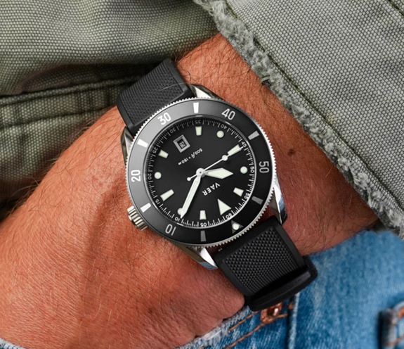 VAER has a storefront on Amazon, and for some reason these 150m water resistant divers are cheaper on Amazon than they are even direct through the brand during their holiday sale. This is their base line. Not assembled in the USA. “Imported.” Yet a great introduction to the brand all the same in a nice, mid-sized 39mm dive style package. Two straps included too. No bracelet option though on Amazon.