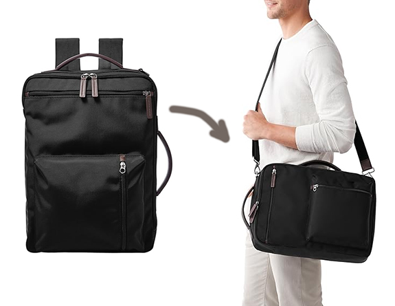 It’s a backpack, it’s a briefcase, it’s both. Great for the commuters and frequent travelers who want to easily and quickly switch between a backpack and a briefcase. Two sizes available, small or medium. Make sure you check out the dimensions and that your pick fits your needs.