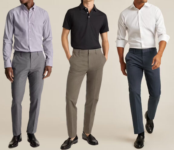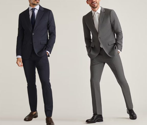 Wait, aren’t these normally excluded Slim, standard, or athletic fits. Sold as separates so you can dial in the fit even further. All-season wool stretch fabric, 3.25″ lapels, double vents in the rear of the jacket, and non-functioning sleeve cuff buttons for easier/cheaper tailoring. Three grays (light, medium, and charcoal), two blues (navy and “light navy”), and black. There’s a lot to like there, now for well under half a grand.