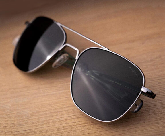 Wire framed aviators or simple acetate or plastic wayfarers. Not oversized and not chunky. No mirrored lenses or overly shined up frames. Keep it simple. And absolutely never wear “smart” glasses with a camera on them.