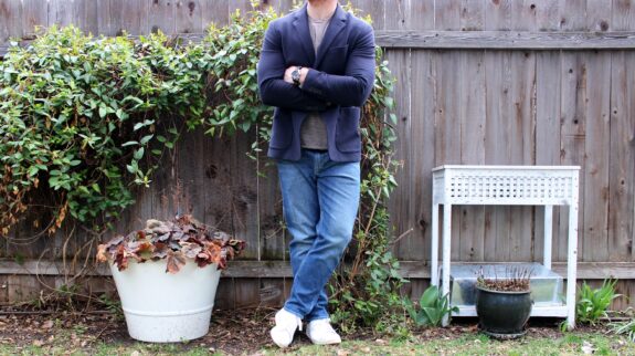 Of course those are more guidelines instead of actual rules. Patch pockets aren’t a must, and a smooth cotton chino “blazer” (instead of wool) can look great as a cheaper alternative. But the overall point is to meet the jeans in the middle in terms of formality. Too great of a contrast in styles between the jacket and jeans can end up looking weird. And that sword cuts both ways. A nice but not overly stuffy blazer will still look strange if you wear it with light wash, torn up jeans. Therefor the more casual the jeans, the more casual the blazer should lean.