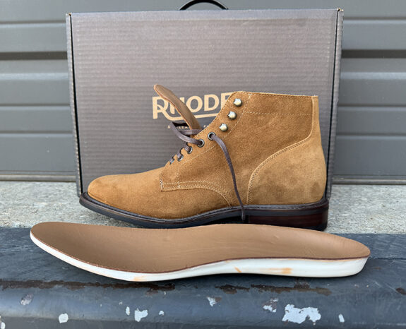 I tried this pair in a 10.5 and on paper, the Rhodes mini-lug boots check the right boxes—they run true to size in both length and width. In practice, however, there’s a fit issue that’s hard to ignore, and it stems from a questionable design choice. With the included removable insoles installed, the internal volume feels cramped in all the wrong places. There’s notable pressure across the top of my instep and through the forefoot, creating a shallow, constricted feel that shouldn’t exist in boots that otherwise fit correctly lengthwise. The telltale sign When laced up, the gap between the facings measures 2-3 fingers in width, which is far wider than the ideal one-finger gap that can indicate a proper fit. The boots are essentially too shallow because the insole is eating up critical room in the arch and forefoot areas. Remove those thick insoles and suddenly everything improves. The internal volume opens up, that instep pressure disappears, and the facings close to a much more appropriate one-finger gap. Problem solved, right Not quite. Without the insole, you’re left staring at exposed stitching and heel nailheads from the lasting board-style midsole construction. Hardly the finished interior you want against your socked foot. Sure, you could source some thinner cork or foam insoles as a workaround, but that raises an obvious question: why should you need to spend additional money and effort to make ~$270 boots fit properly out of the box This feels like a fundamental design oversight. Either Rhodes needs to spec thinner insoles or redesign the last to accommodate the insoles they’ve chosen. As it stands, you’re stuck choosing between an uncomfortable fit or uncomfortable construction details, neither of which is acceptable at this price point.