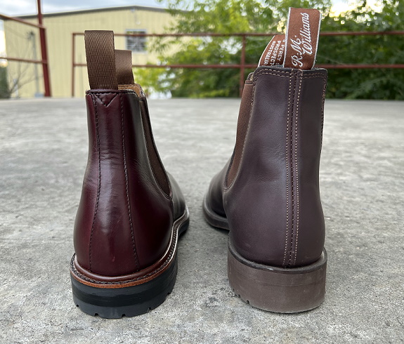 A side by side with the recently reviewed R.M. Williams Gardener Chelseas.