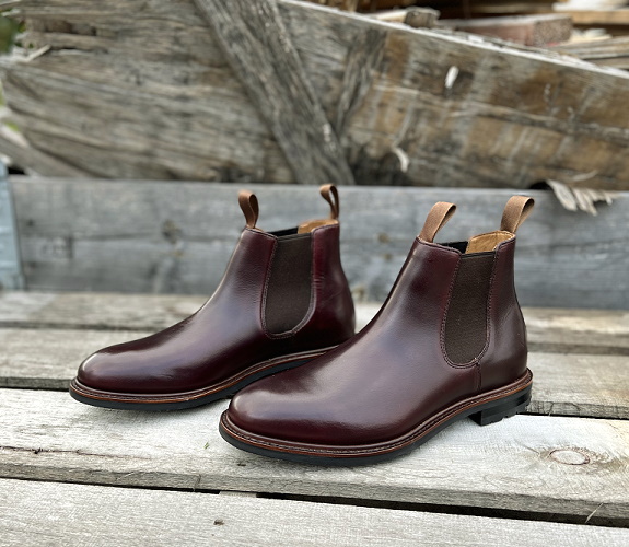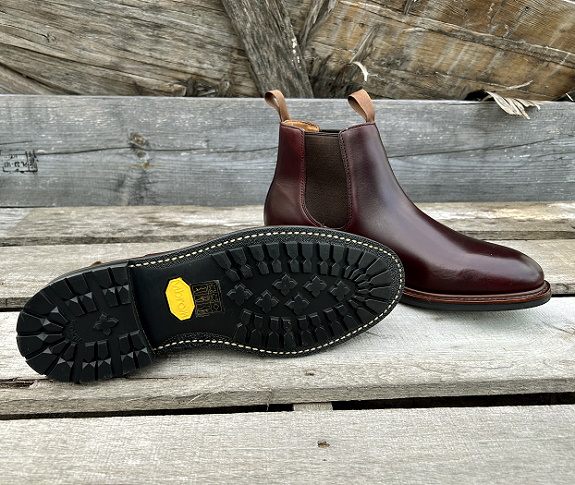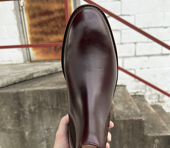 Fresh out of the box, I’m loving the overall aesthetic of these new Kenton Chelsea boots. This upper is done up in Horween’s famous Color #8 shade which is a dark burgundy shade that leans into a deep brown tone. It’s a bit shiny in finish, a bit flat in depth, but looks great in person. I own a few pairs of shoes and boots in this shade and it’s way more versatile than you may imagine. Depending on the specific boot or shoe, I regularly pair this color with outfits ranging from super casual white t-shirts and blue jeans to full on navy business suits with a matching burgundy knit tie and tipped linen pocket square. Speaking specifically to Chelsea boots, they’re fast becoming some of my favorite footwear options. They’re easy to wear, simple to pair, and are routinely more comfortable than some of my other boots and shoes. As a parent to a toddler, my wife and I are always chasing down the kiddo and rushing to get out the door. When I know I’m short on time, I default to Chelsea boots because they’re so easy to wear.
