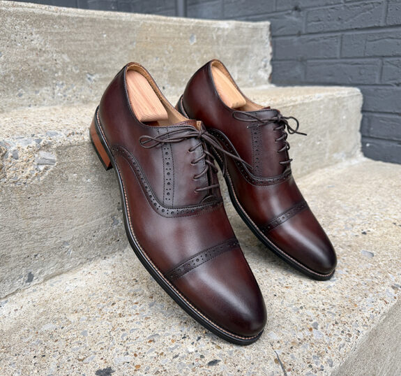 Brogue oxfords represent one of menswear’s most enduring and versatile dress shoe styles, seamlessly bridging the gap between business formal and social formal occasions. The distinctive and decorative perforations that define broguing originated as functional drainage holes in traditional countryside footwear, but have evolved into sophisticated ornamentation that adds a layer of visual interest without sacrificing too much elegance. Cap toe oxfords with brogue detailing offer a slightly more formal alternative to full brogues while maintaining that visual oomph that the perforated detailing provides. In a conventional shade of dark brown leather, these shoes become particularly compelling for the modern gentleman’s wardrobe, offering more versatility than plain black oxfords for daytime business wear, weekend social events, and everything remotely formal in between. When executed well, a quality brogue oxford can serve as the foundation for countless refined looks. With this in mind, I was eager to evaluate Spier & Mackay’s latest take on this menswear essential and see how their brogue cap toe oxfords measure up in terms of design, materials, and an overall value proposition.