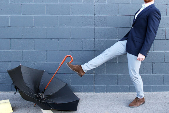 Price lives around $200 – $240, but goes on sale often as it’s J. Crew Factory.(Pants are lululemon ABC trousers. | Chukkas are Sanders. | Umbrella = Totes.)