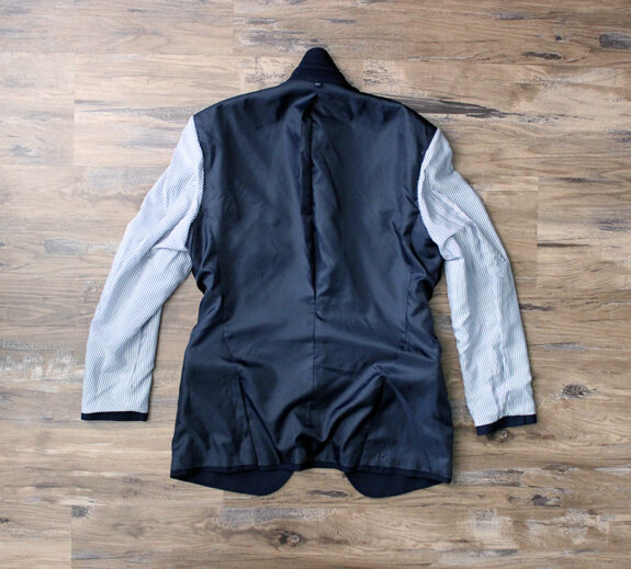 Interior is fully lined in polyester, which won’t breathe as well as viscose/Cupro. But it’s not stiff or scratchy. And at this price point, a poly lining is expected. Sleeve lining is a combination of 51% poly and 49% viscose, so there should be at least a little more breathability there. But during testing, the blazer didn’t feel stuffy or suffocating.