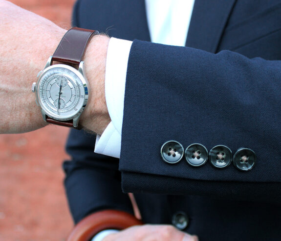 Cuff buttons are non functioning, which makes for cheaper tailoring.(Watch is by Dan Henry.)