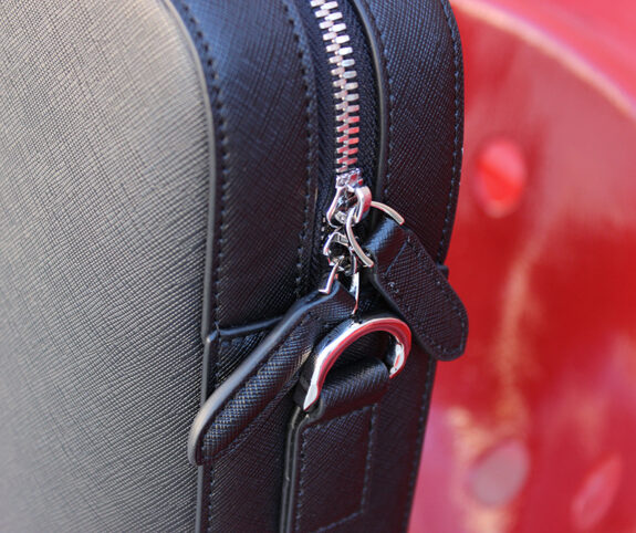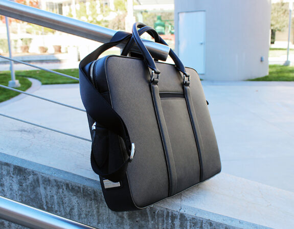 It’s made from something called Saffiano leather. If the word isn’t recognizable, the texture will be as you’ve almost certainly seen it and felt it. It’s a processed, stiffer leather with a subtle cross-hatch texture. Horween CXL it is not. But it still flexes and moves, feels durable, and looks professional. That and the texture keeps any gloss/shine down. You know that “plasticky” look cheap leather can have That’s avoided with Saffiano. High end luxury makers use it. More affordable brands use it. It’s a good look for professional spaces and a chameleon when it comes to price and status.