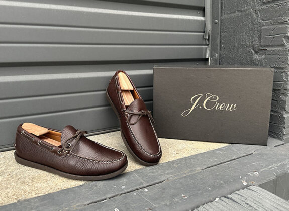 Still made in Italy. A real favorite. English leather uppers, natural crepe rubber sole, unstructured and casual without looking sloppy. Something J. Crew has been making for years. Full review here.