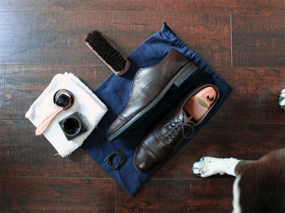 As we mentioned earlier, it’s important to keep dust and dirt away from your fine shoes. Scientists say dust is primarily composed of dead skin cells, dust mites, soil, tiny plastic particles, loose clothing fibers, bacteria, hair, etc. Now, imagine what’s in your closet and you will probably understand that we should be taking better care of our shoes when they’re not being worn. Personally, every pair of shoes that I purchase (not including cheap sneakers) gets a set of cedar split-toe shoe trees and a pair of individual cotton flannel shoe storage bags. (Editor’s Note: And that’s why he’s our shoe expert.)