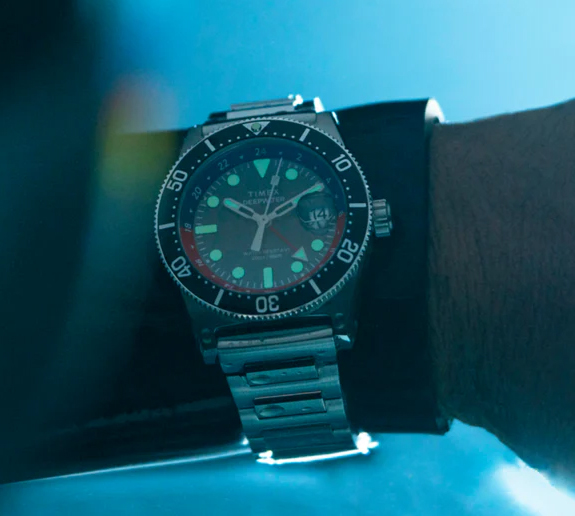 Still no stock on the regular (non GMT) version, but for those who want a travel ready GMT watch that can also go for a serious dip in the pool/lake/ocean, then here’s a pretty great option. See the full review of the regular version here. And assuming the GMT is basically the OG with an extra hand and the accoutrements which come with a GMT hand, then expect this watch to be pretty great. The H-link bracelet is super comfortable and even comes with quick release pins. So if you want to throw it on a NATO for a more casual outing Great. Put it on a leather strap for dinner Cool. Criticism: there are some weird continuity errors in the pics on the Timex website (namely: does it have a cyclops over the date or not The pictures show a watch with and a watch without), and oddly enough they just haven’t fixed those discrepancies.