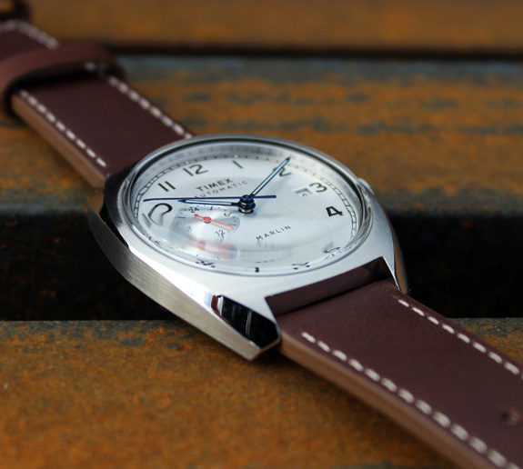 21 jewel Miyota automatic movement, leather strap with deployant clasp, and smart looks. It’s certainly not a cheap Timex, but it does look like a watch which should cost a lot more.