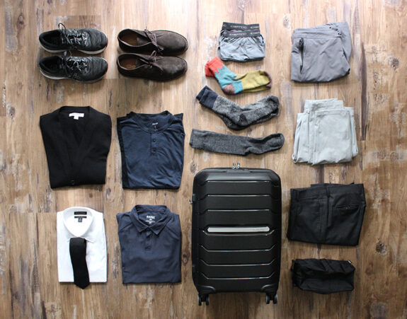 - The setup in the above post is best for milder weather. If you’re headed somewhere cold, pack long sleeves instead of short sleeves. If it’s cold/wet where you’re headed, you’ll clearly need a mac (mild) or overcoat (cold). If it’s absurdly hot you’ll probably default to picking lighter-in-color stuff, but don’t be surprised if dark performance-fabric and/or merino clothes outperform even the lightest cotton.