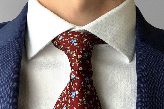 In this situation, the tie is about showing respect for the occasion, institution, and faith (whether it’s your faith or you’re a guest of a worshipper). Also, another instance where you may be in pictures so you will want to look like you are properly dressed for the event when you look at the pictures years later. (Similar to tie shown: Massimo Dutti Contrast Dot Tie in Burgundy – $69.90)