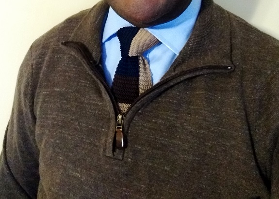 You don’t need a special occasion if you just want to rock a tie. It doesn’t have to be worn with a suit or blazer either. Try a knit tie, which is less formal than a traditional silk tie, underneath a sweater for a smart, cool vibe on an otherwise casual outfit. (Similar to tie shown: Polo Ralph Lauren $59.99 ($95), or TheTieBar striped sweater tie – $25)